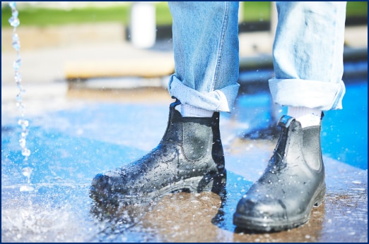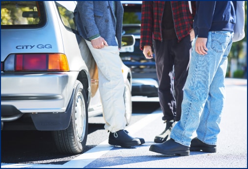 自分の手でクルマを洗うには、当然水が必要で、服やその足元の靴は当然のように濡れてしまう。だからと言って、サンダルでクルマを運転することは好ましくないと教習所で習ったし。かといって長靴でクルマの運転はしづらいしスマートさに欠ける。自分の愛車を洗車する瞬間も、せっかくならかっこよくありたい。でもスニーカーも濡らしたくは無いよね、と話をしている中でこの日履いているブランドストーンのブーツに目が留まる。