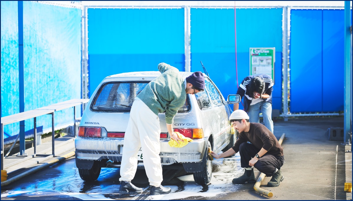 砧公園から30分ほどクルマを走らせて到着したのは、川崎にある洗車場「洗車CLUB野川」せっかくだしドライブがてらちょっと足を伸ばしてみることに。洗車場に到着するまでの車内である説が浮上、それは「ブランドストーンのブーツこそ洗車に最も適しているのではないか。」という説。