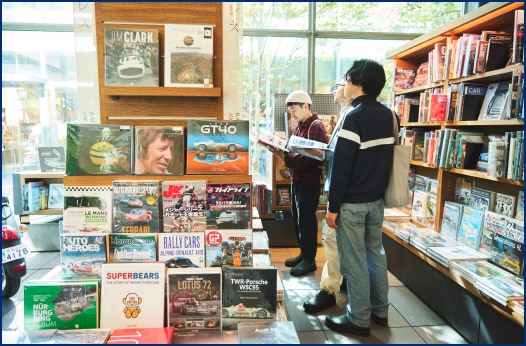 洗車を終えて、いつもより綺麗になったクルマにメンバーと少しの自信を乗せて向かったのは代官山にある蔦屋書店。書店にも駐車場が備わっているんだけど、お店の前の旧山手通りにはパーキングメーターがたくさんあるのでサクッとそこに停めることに。様々なジャンルの専門書から雑誌まで幅広く揃う代官山蔦屋書店では、第二日曜日の朝に駐車場でモーニングクルーズと呼ばれるカーミーティングが行われていたり、店内の車コーナーの品揃えが豊富で、クルマ好きとしてはどれだけいても飽きない空間。なぜ代官山蔦屋書店に来たのかというと、なんと車コーナーに僕らCCGが制作したZINEを置いて頂いているから。
