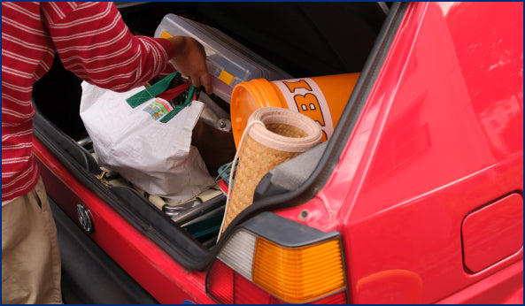 かき集めた、キャンプギアとも呼べない道具たちをクルマに積み込む。さすがは名車ゴルフ、意外と荷物も載る!見直したぞ。クルマは眺めているもの楽しいけど、やっぱりこうして一緒に出かけられるのが嬉しい。