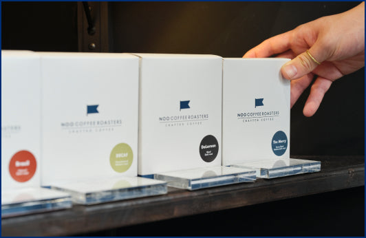 少し歩いてお店に到着。扉を開けるとコーヒーのいい香りが出迎えてくれて、レジ前にずらりとコーヒー豆が並ぶ。コーヒーはあまり詳しくなくて悩んでいると、店員さんが試飲を勧めてくれた。