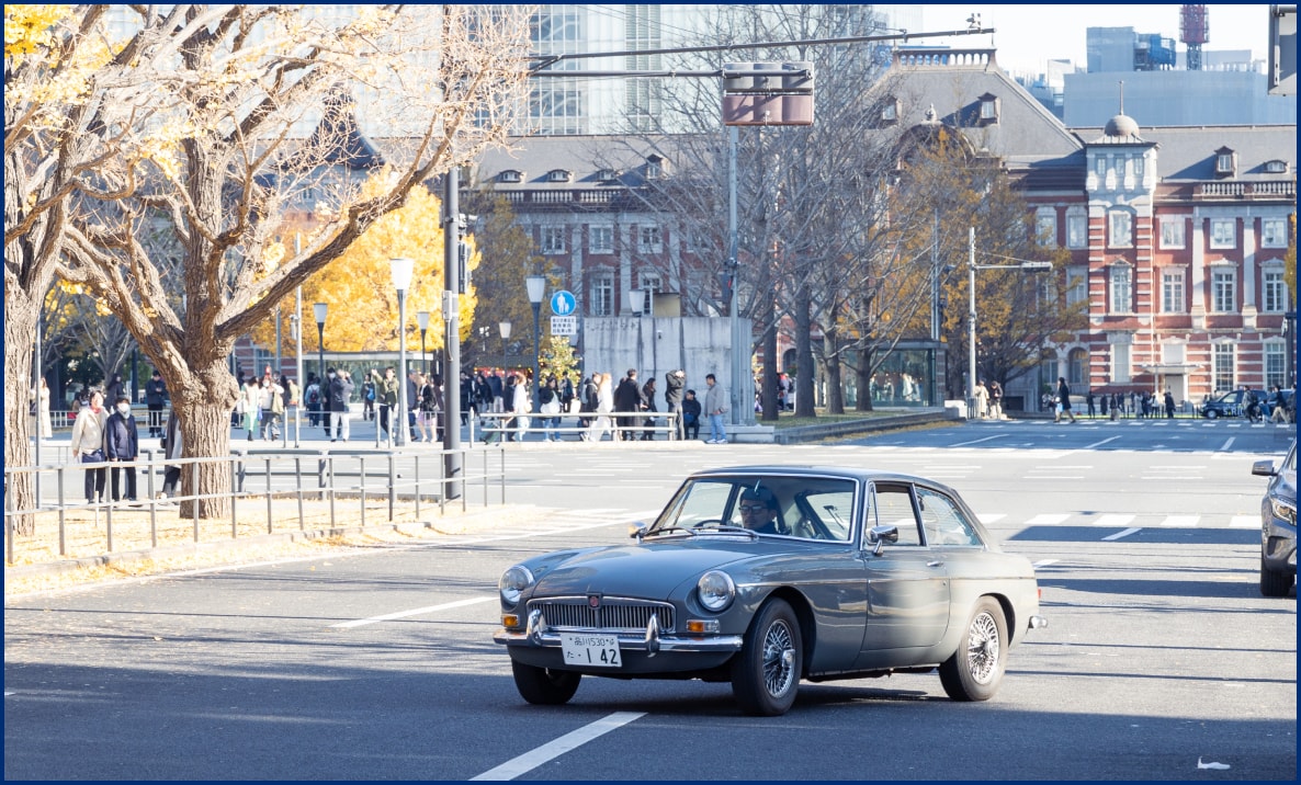 そんな丸の内エリアをクルマで楽しむのはホタカさんと1967年式のMGB GT。