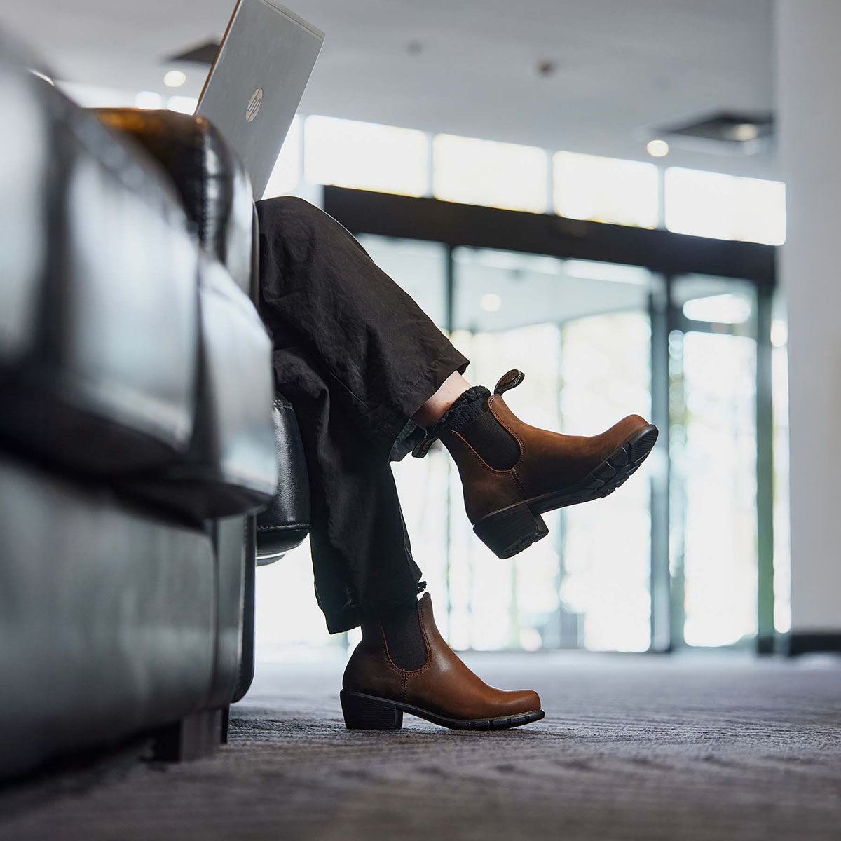 WOMEN'Sシリーズは、定番サイドゴアブーツの快適な履き心地はそのままに、ポインテッドトゥのシルエットと、5cmヒールですっきりとした、女性らしい印象のデザインです。ブランドストーンの特徴となる履き口のプルストラップは、着脱を容易にするだけでなく、着こなしにこなれた表情を添えます。