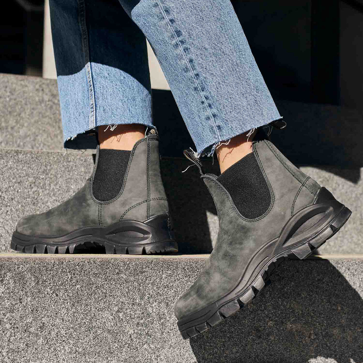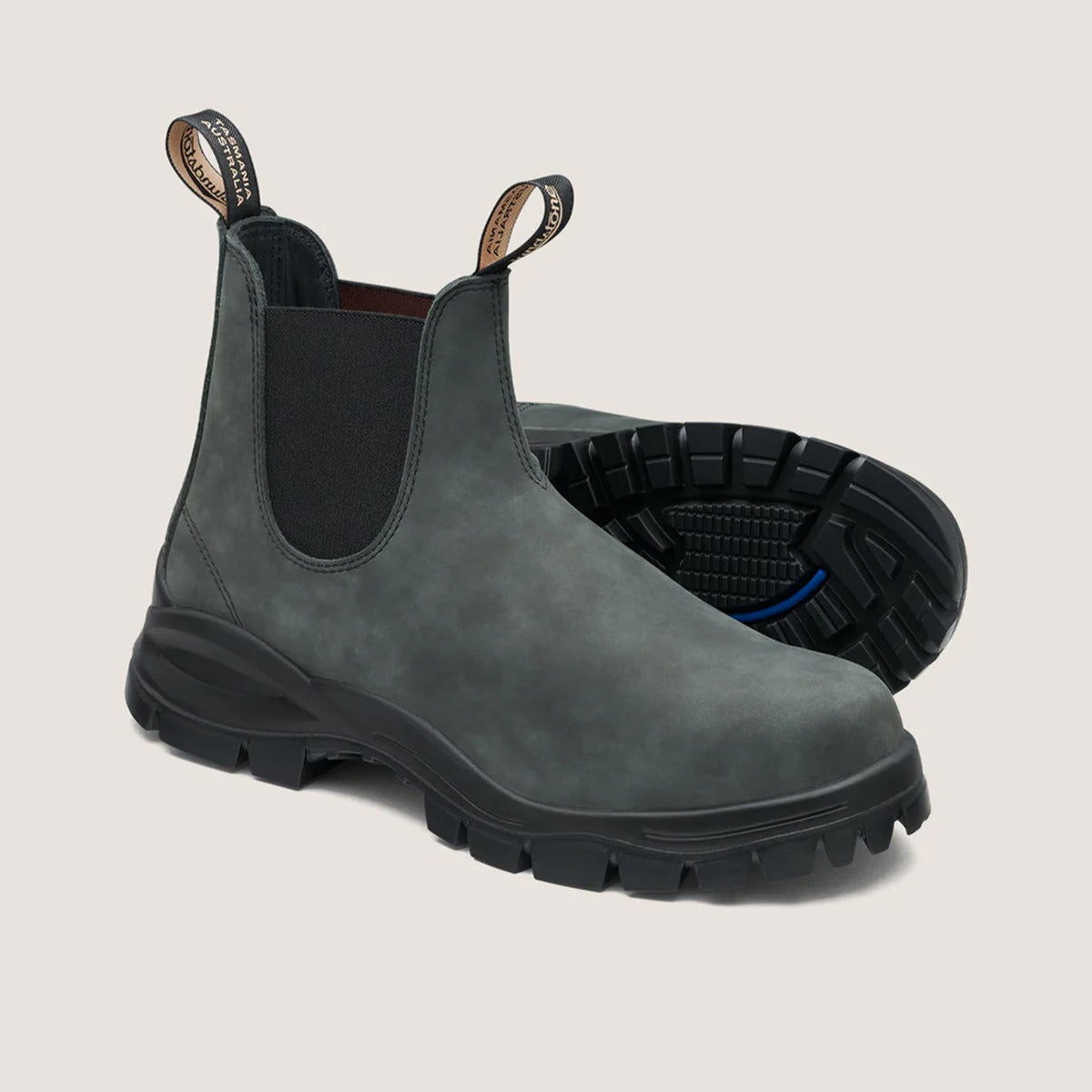 深い溝が付いたボリュームのあるソールは、様々な環境下でグリップ力を発揮し、